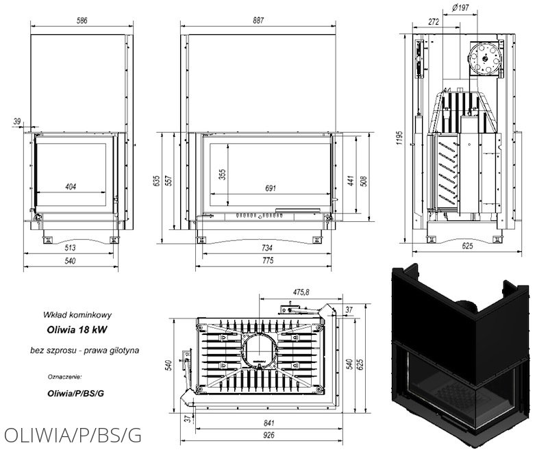 Каминная топка Kratki Oliwia/P/BS/G (Г-образное стекло справа, гильотина) для угловых либо пристенных каминов. Особенно оригинально топка будет выглядеть в комплекте с угловыми каминами. Мощность прибора высокая, достигающая 18 кВт, что позволяет отапливать большие жилые пространства.
