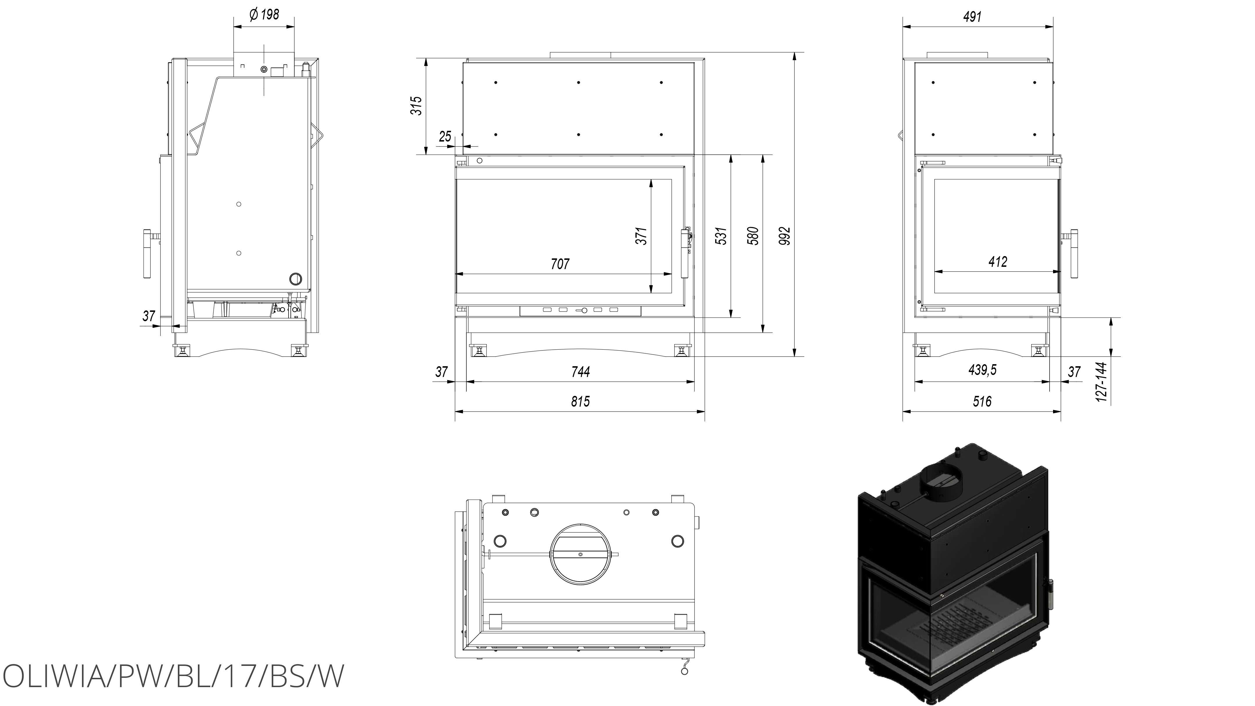 Каминная топка Kratki Oliwia/PW/BL/17/BS/W