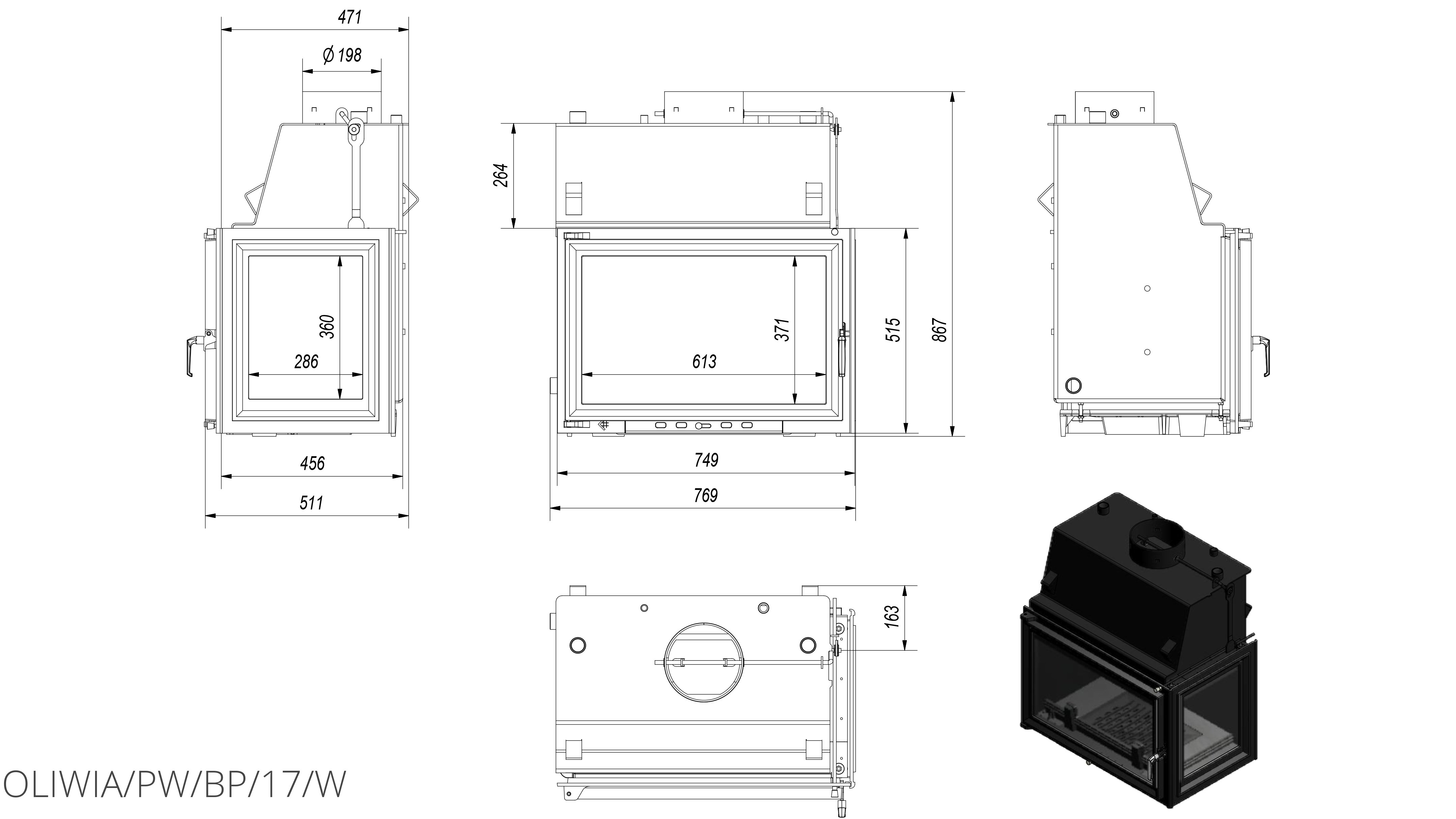 Каминная топка Kratki Oliwia/PW/BP/17/W