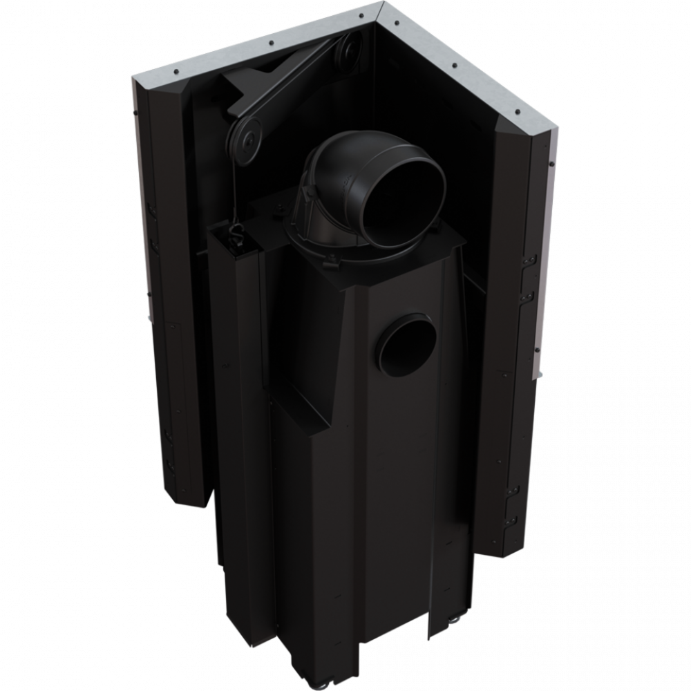 - Топка имеет встроенный в высокий переход из камина в дымоход горизонтальный дымоходный водяной дефлектор, который позволяет дополнительно отводить тепло из дымовых газов и, таким образом, максимально использовать энергию.