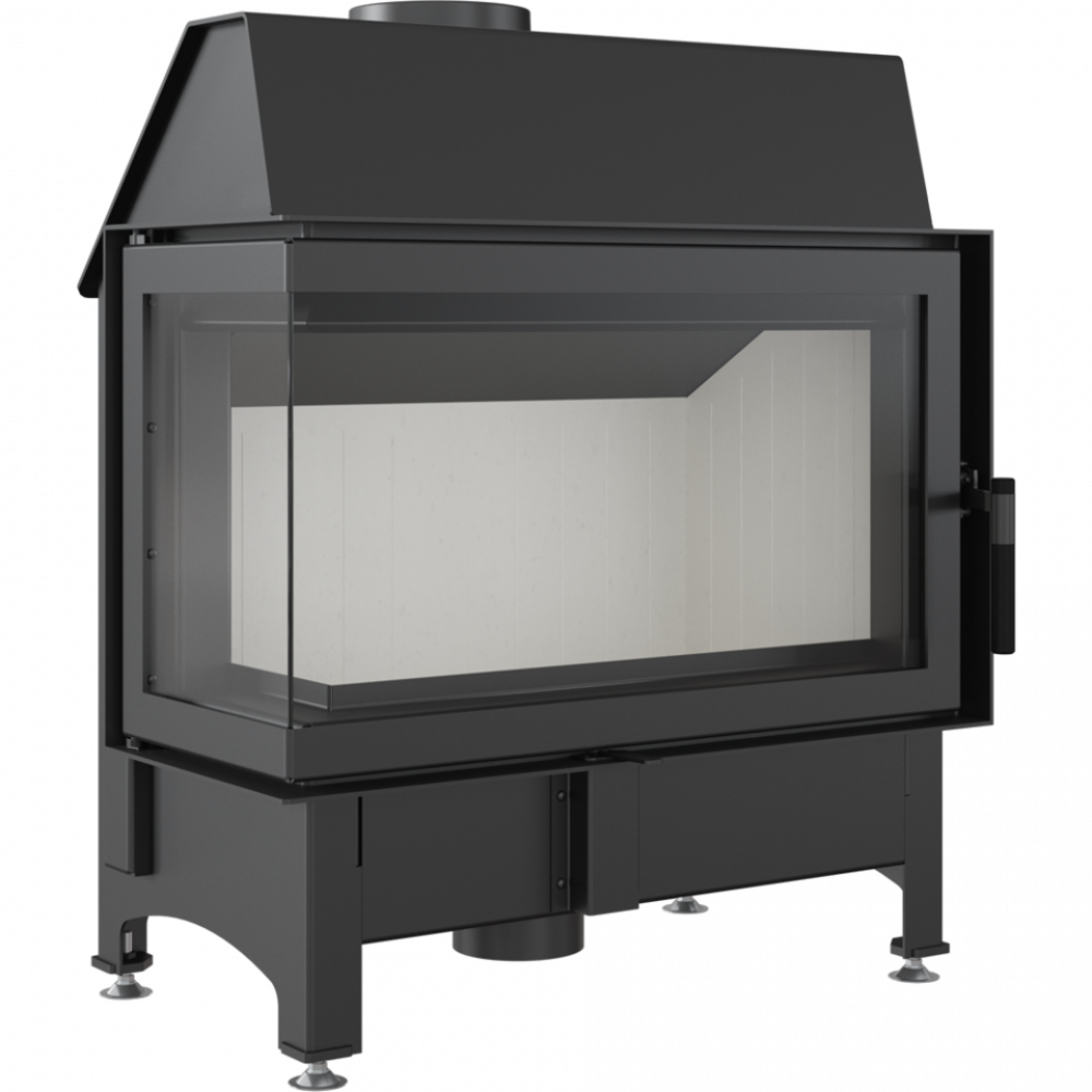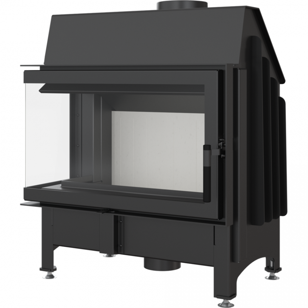 Стальная каминная топка Kratki Zibi/L/BS (Г-образное стекло слева) с современной панорамной передней стороной, что делает ее более широкой, чем есть на самом деле.