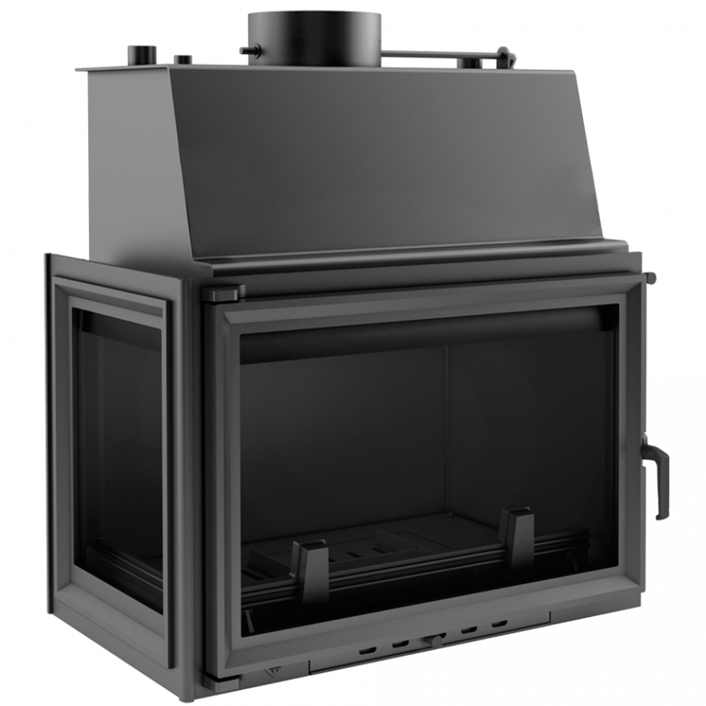 Каминная топка Kratki Zuzia/PW/BL/19/W (стекло слева, змеевик) с водяным контуром — это топка небольшой мощности со встроенным теплообменником, дополнительным остекленеем с левой стороны и змеевиком. Данную топку можно размещать в каминах углового типа – остекление с двух сторон позволяет прекрасно видеть огонь с нескольких сторон.