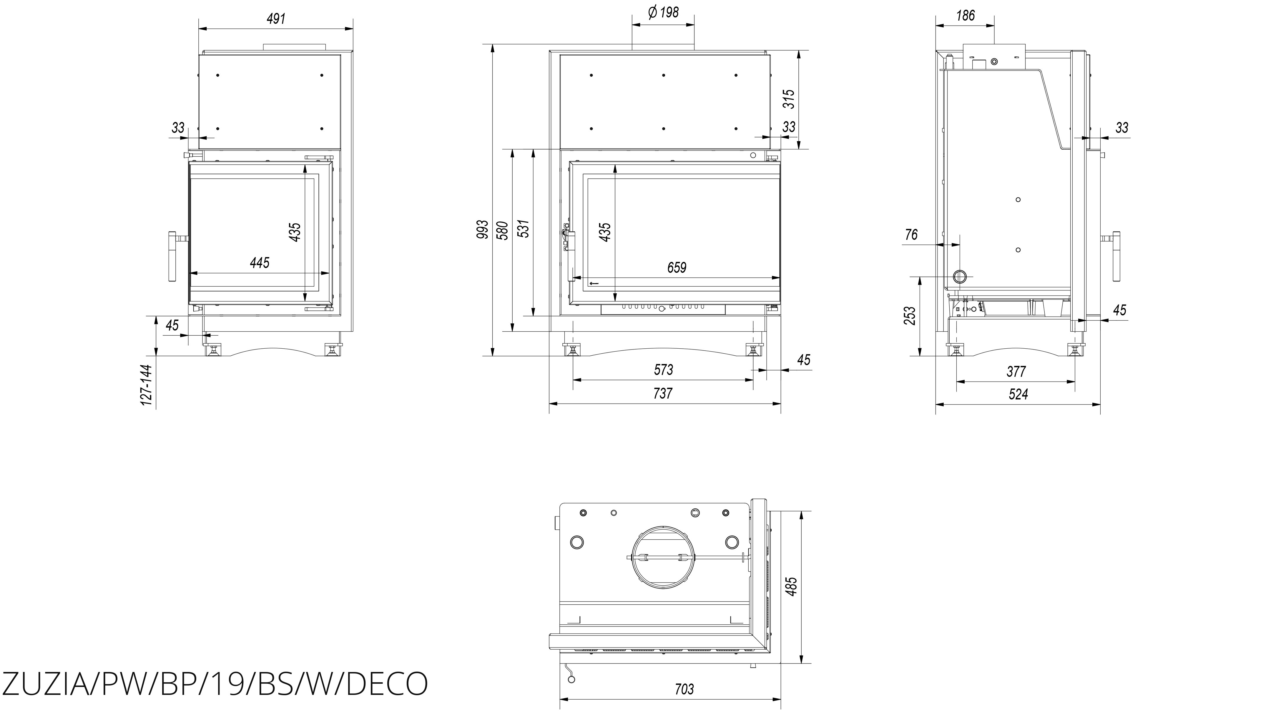 Каминная топка Kratki Zuzia/PW/BP/19/BS/W/Deco