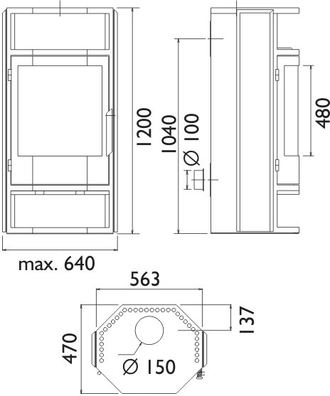 - Диаметр дымохода, (мм) 150
