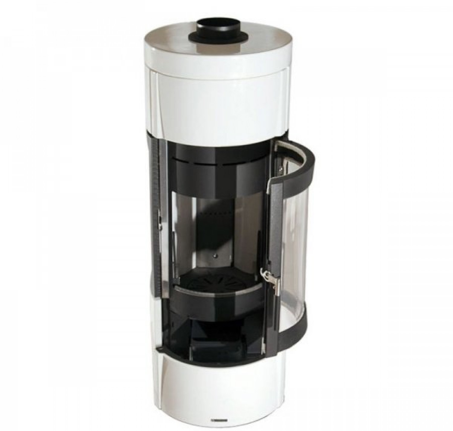 Возможные варианты цвета: белый и красный. Есть сиcтемы первичного воздуха, вторичного воздуха и третичного воздуха. Изогнутые дверцы топки сделаны из керамического стекла. Керамические детали выдерживают до 750°C. Представленная печь-камин на вращающемся основании (Угол вращения - 90 °). Наружные плиты изготовлены из майолики (цвет - бордо, белый инфинити).