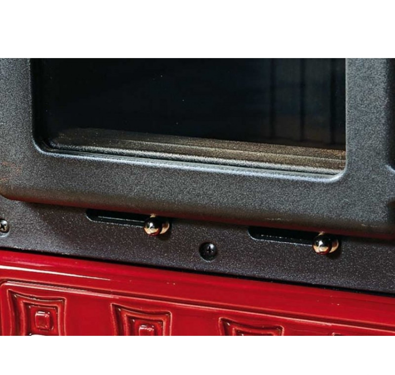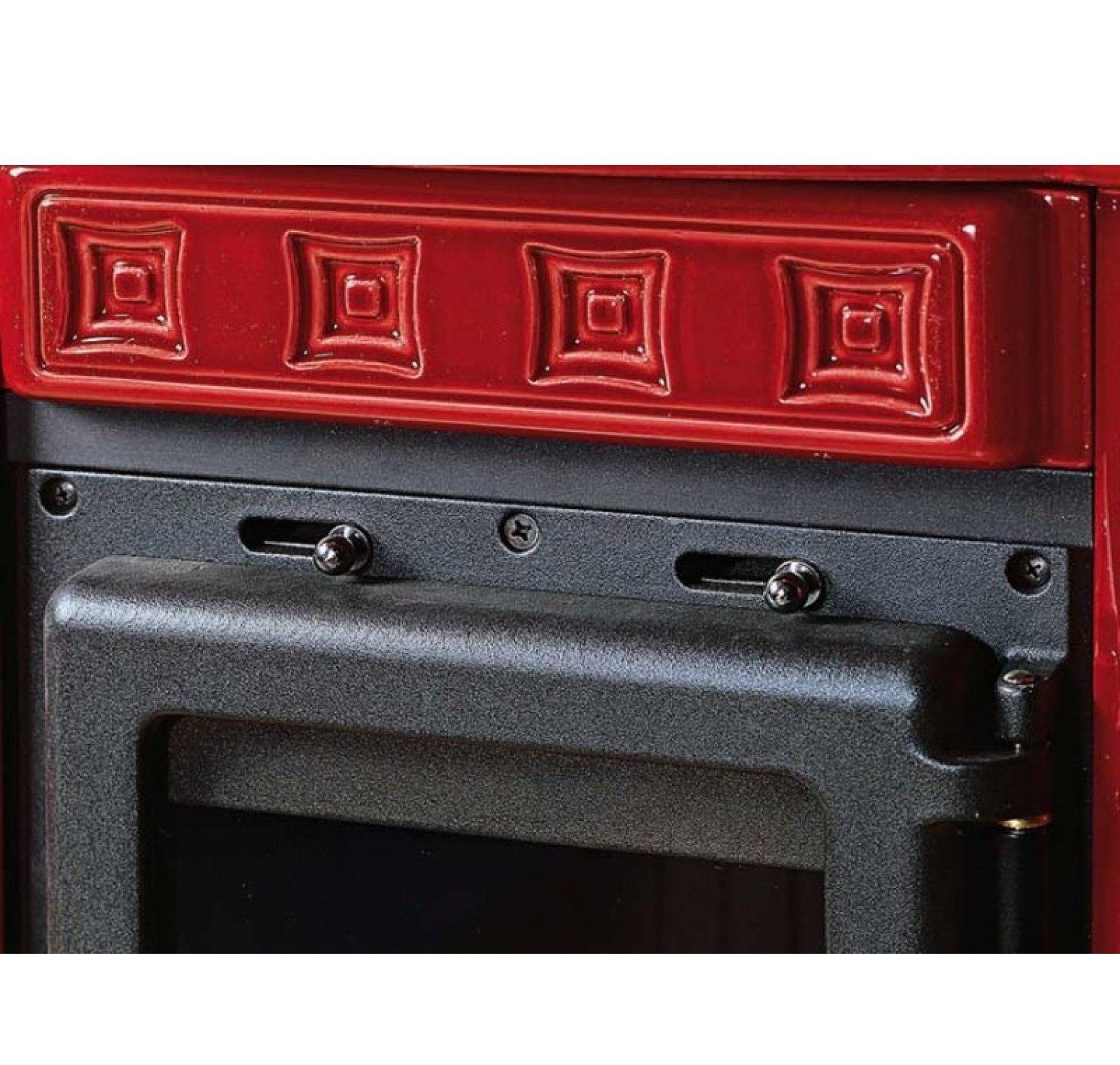 К достоинствам камина относится высокая мощность, хорошая технологическая оснащенность и красивый внешний вид. Камин работает на сухих дровах и имеет встроенные системы управления вторичным и третичным воздухом, позволяющим повысить тепловую эффективность печи до 79,8%. Основные элементы модели выполнены из литого чугуна. Конструктивно печь состоит из трех функциональных частей: топочной камеры, вместительного духового шкафа и зольника. Топка и духовка имеют дверцы с большими окнами из термоустойчивого стеклокерамического материала, способного выдержать жар в 750 градусов Цельсия. Благодаря обдуву внутренней поверхности окон горячим вторичным воздухом (система «чистое стекло»), продукты горения не оседают на их поверхности. Внешняя облицовка печи изготовлена из майолики (капуччино, бургундия, пергамент) эксклюзивной ручной формовки.