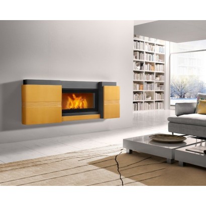 На фото представлена облицовка в цвете Giallo Acceso с дровяной топкой MC 90/44.