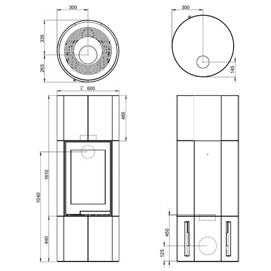 - Диаметр дымохода, (мм) 150