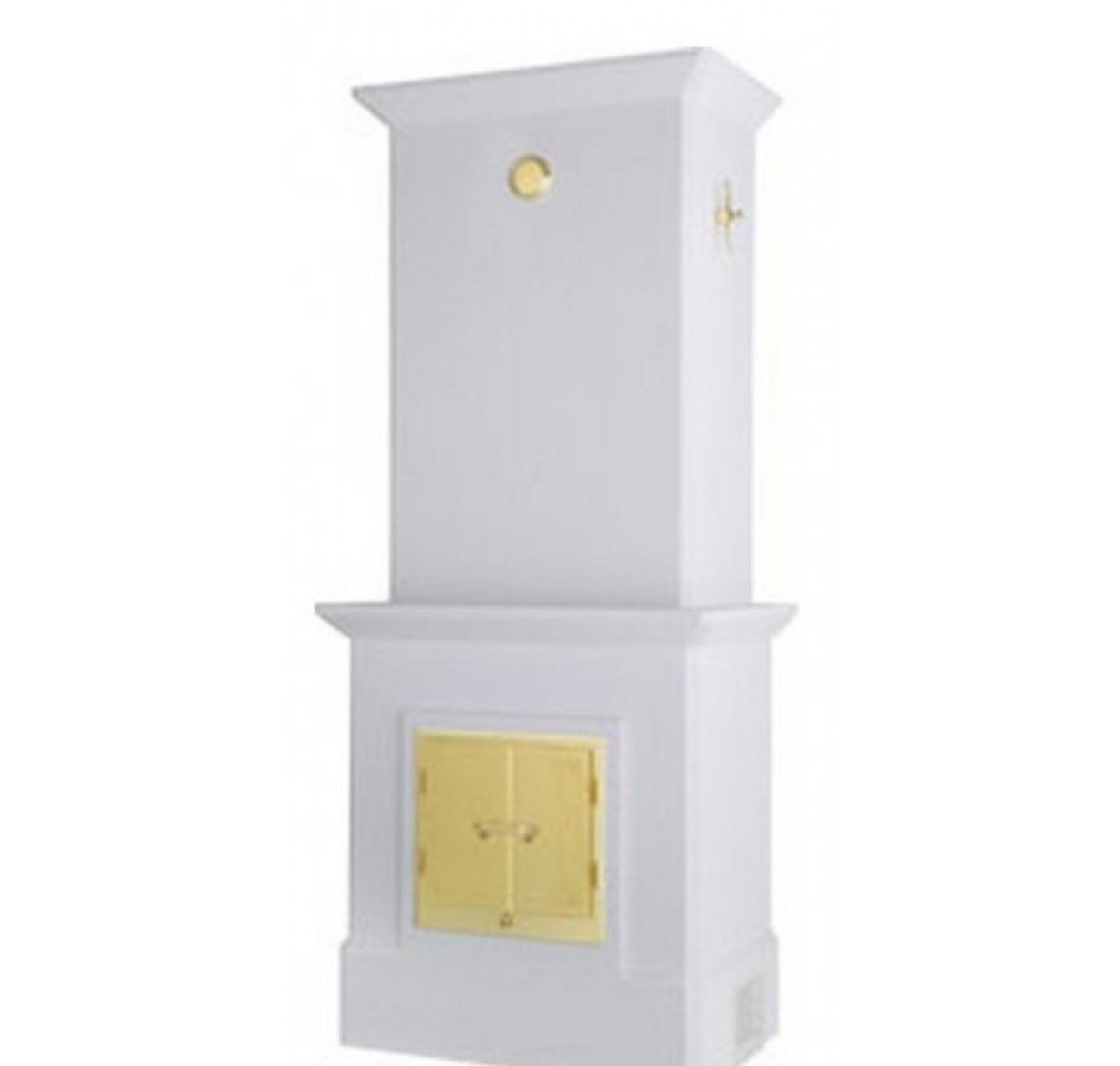 Топочная камера оснащена чугунной решеткой и дверцей, вынимающимся зольником и внутренней облицовкой из вермикулита. Теплонакопительная сердцевина печи состоит из оливина, люк - латунь. Отделка - бетон под покраску или штукатурку.