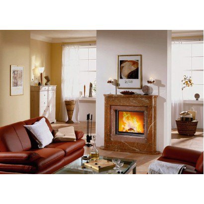 Портал из натурального камня (выбор камня из каталога). В комплект входят декоративные отделочные рамки, необходимые для оптимального монтажа топки.
