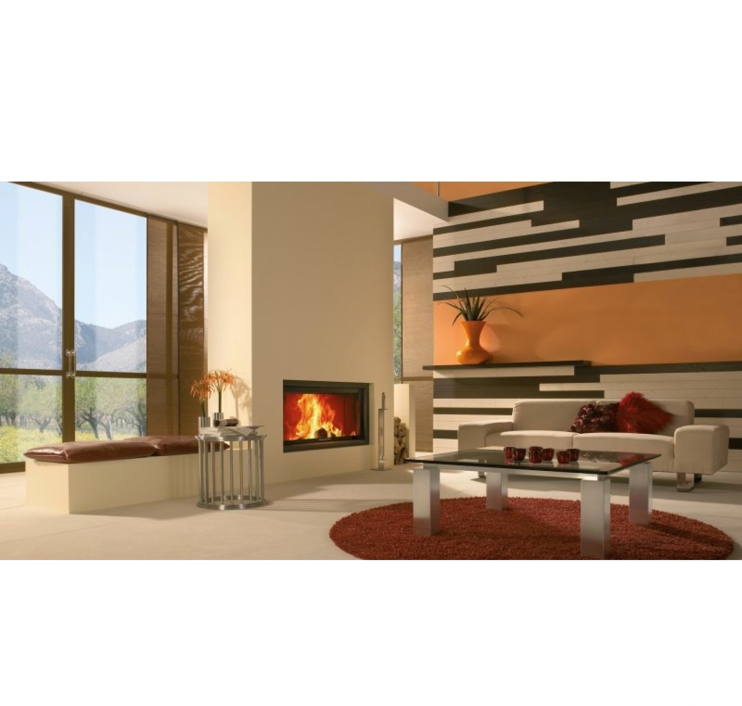 Для топки Varia B120h 3s самым ярким и актуальным является проявление черт минимализма: большая плоскость фасада, четкая геометрия, предельная простота оформления, отказ от нужного (дверная ручка) в пользу самого необходимого (увеличения панорамы огня).