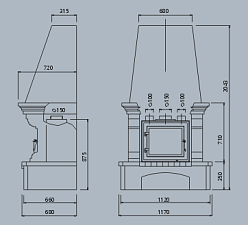 Цена указана за камин в стандартном исполнении (см. чертеж) из указанных материалов без топки.