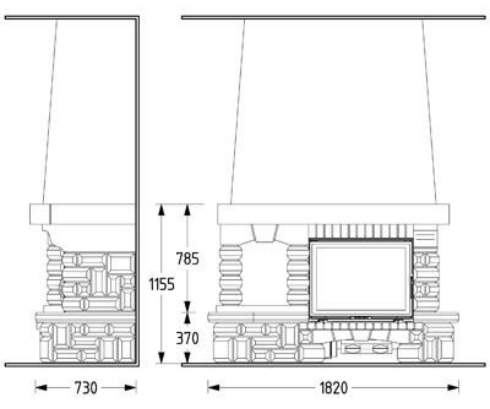 Цена указана за камин в стандартном исполнении (см. чертеж) из указанных материалов без топки.