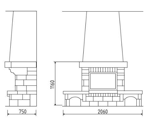 Цена указана за камин в стандартном исполнении (см. чертеж) из указанных материалов без топки.
