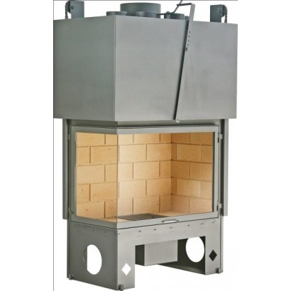 Топка Lateral 900 выполнена из легированной стали.Ширина очага 770 мм, глубина очага 390 мм. Высота видимой части пламени 564 мм. Очаг выложен кирпичными блоками со швами. Размер блока 110х220 мм. Подъемная ручка двери прямая 12 см.