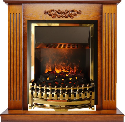 Электрический очаг Dimplex Atherton серии Opti-Myst с эффектом реального пламени. Этот стильный классический очаг в обрамлении золотого цвета предназначен для встраивания в порталы, выполненные в классическом стиле.