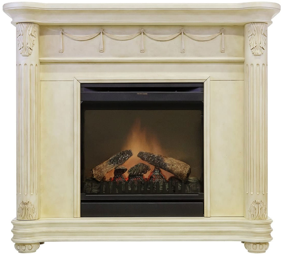 Необычный дизайн каминокомплекта Rome сразу же выделяет его среди прочих и притягивает взгляд, благодаря резным фигурным ножкам, на которых возвышается грациозно-изящный портал, выполненный в цвете белый антик с золотом. Легкий рельефный узор на фронтоне и кронштейнах привносит в каминный ансамбль едва уловимую нотку стиля европейских салонов IX века.