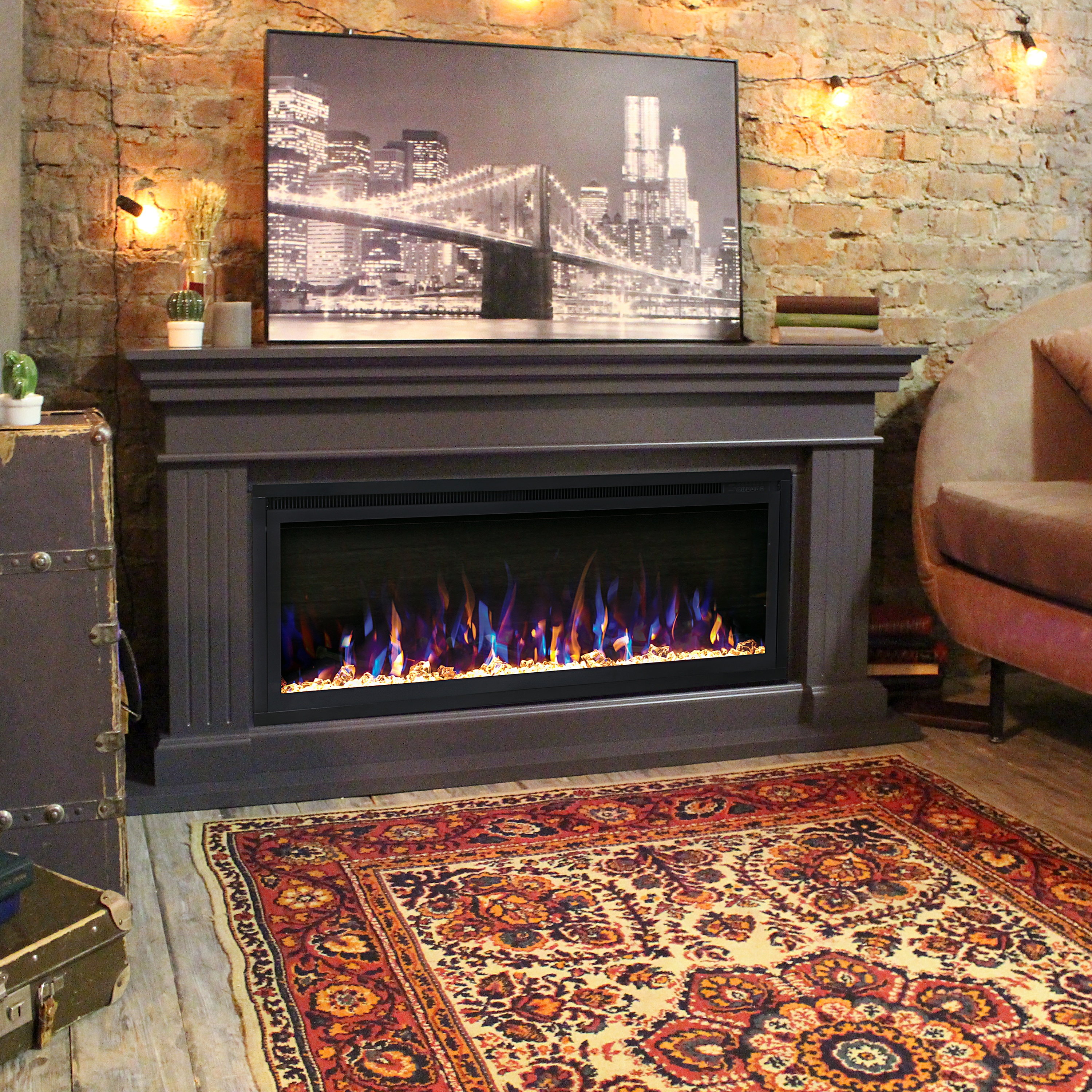 В комплект с линейным порталом Ontario входит широкий электрический камин Saphir 42. Такой очаг с мощностью 1.5 кВт будет отлично служить дополнительным источником тепла для небольших помещений. Очаг имеет встроенную функцию регулировки яркости пламени и пульт дистанционного управления. Дополнительный уют придаст приятное потрескивание дров, которое создается благодаря встроенной функции звукового сопровождения.