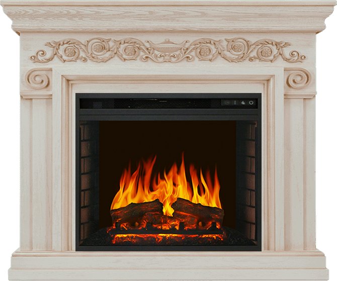 Горение «огня» в очаге сопровождается звуком потрескивания дров, что создает иллюзию настоящего пламени. В роли декоративного топлива выступаю светодиодные дрова, максимально приближенные к реальным. Внутри топка выложена кирпичной кладкой.