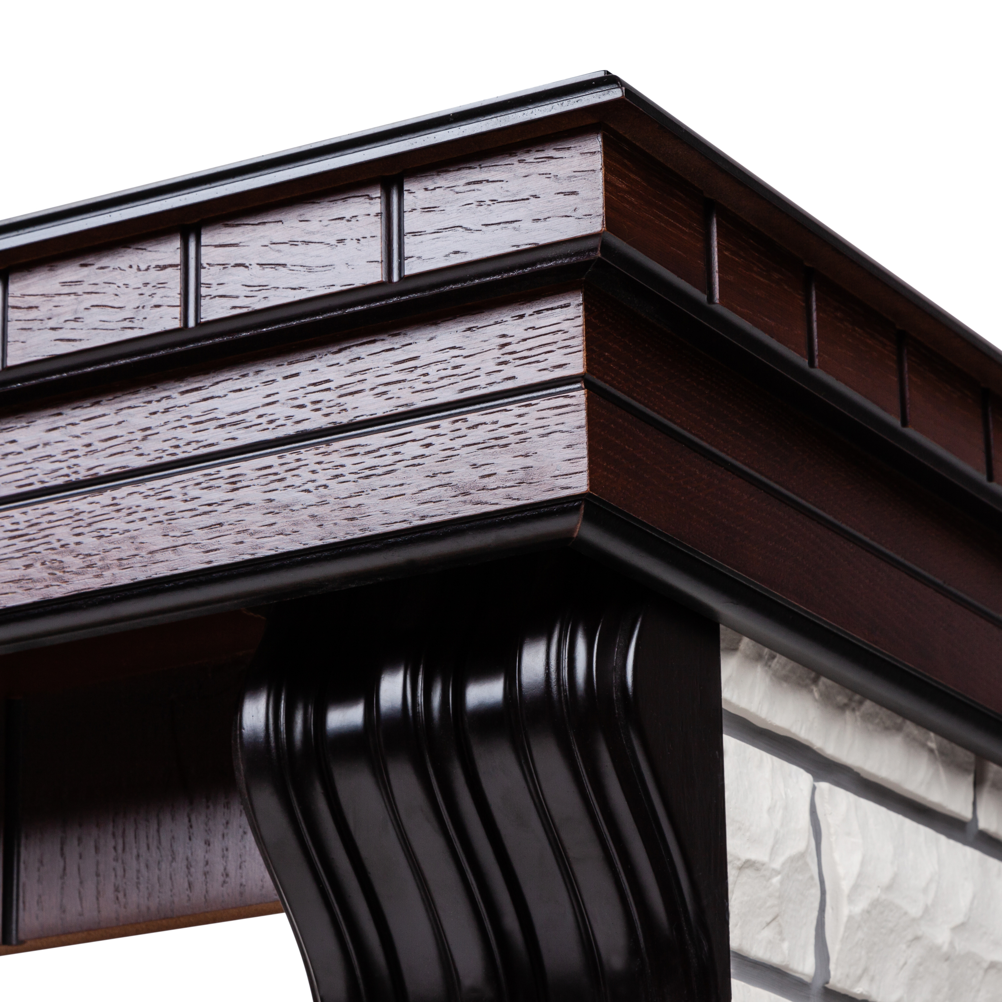 - Изготовлен из искусственного белого камня и шпонированного МДФ цвета античный дуб.