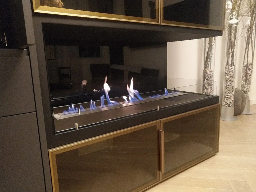 Этот биокамин не только стильно выглядит, но и идеально вписался в интерьер Ильнура, не занимая много места. Панель для биокамина изготовлена из нержавеющей шлифованной стали, а очаг покрыт огнеупорной порошковой краской немецкого производства, что обеспечивает долговечность и безопасность.