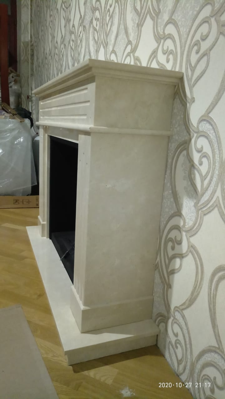 Биокамин с порталом Варшава. Выполнено по индивидуальному заказу. Портал Варшава отличает стильный дизайн, который можно использовать как в современных, так и в классических интерьерах. Для покраски применяется технология порошкового окрашивания, что гарантирует долговечность камина. Не требует дымохода, а при сгорании биотоплива не выделяется дым, запах, газы и вредные соединения. Очаг Firezo изготовлен из нержавеющей стали, выдерживающей высокотемпературный нагрев. Абсолютная безопасность эксплуатации. Модель мрамор CREMA MARFIL. Размер 122,5х101,3х32,3 см.