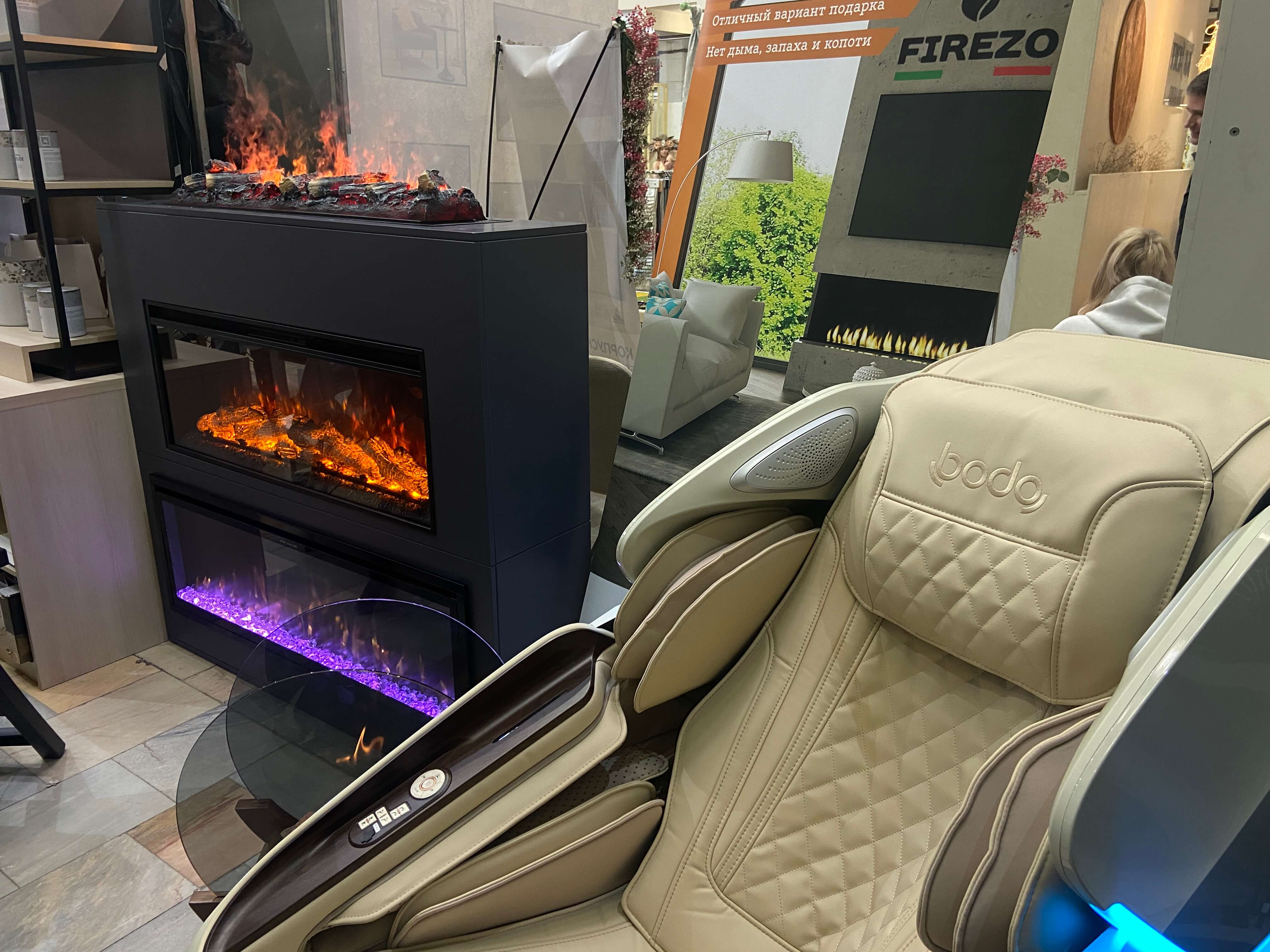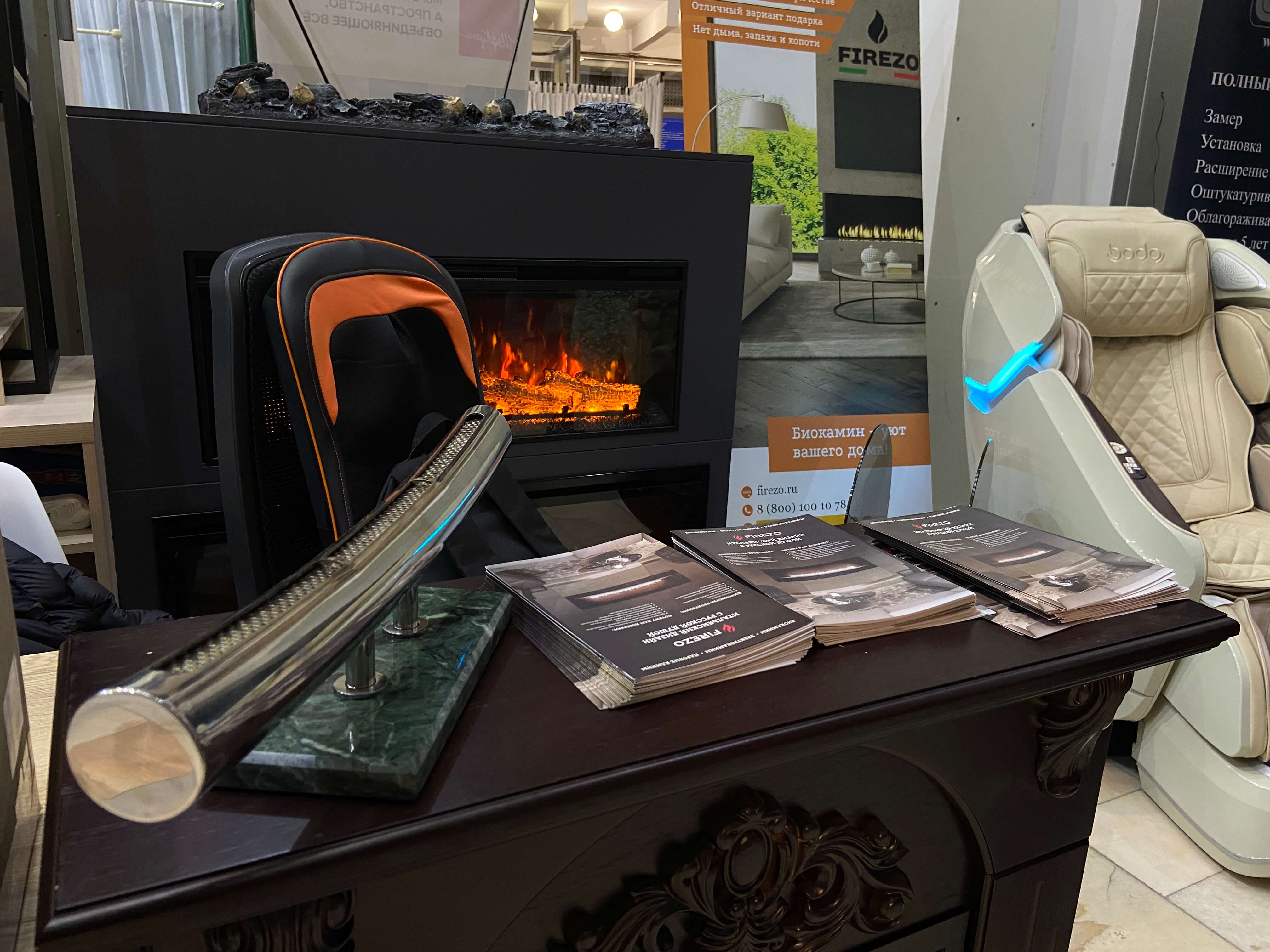 Мы представляли на форуме свои выставочные образцы биокамина, паровой камин и электрокамины.