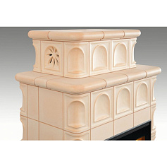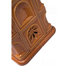 Великолепная керамическая облицовка оригинальна, но вместе с тем сдержанно элегантна. Аккуратно сделаны и обработаны мельчайшие элементы, углы, плавные линии. Моделям с изящными каминными полочками часто отдают предпочтение лирически настроенные покупатели. Не дают вылететь из топки в комнату раскаленным искрам и углям широкие заслонки из огнеупорного стекла. Но через них приятно смотреть, как горят поленья, как каждую секунду меняется пламя.