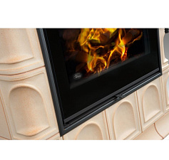 Но облицовка это не только красота. Она выполняет важное функциональное предназначение. Главным секретом изразцовой печи-камина Hein является способность облицовки аккумулировать тепло. Для усиления функции накопления тепла производитель использовал большие керамические блоки. Печь долго остается теплой, даже когда огонь давно погас.