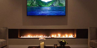 Биокамин Safretti Curva ST черный со встроенным жидкокристаллическим телевизором Samsung. Это прекрасный симбиоз двух продуктов, каждый из которых дополняет друг друга. Оригинальное дизайнерское решение для совмещения телевизора за зеркальным стеклом и уютного камина под ним.