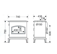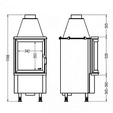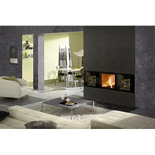 Высокоэффективная встраиваемая каминная топка C-3/60 из огнеупорного чугуна, с прямым фасадом и дверкой с керамическим стеклом. Имеется предохранительный термостат.