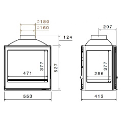 Каминная топка без дымосборника. С правым и левым боковыми стеклами.