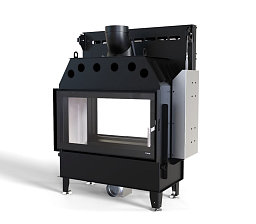 - Топка оснащена регулировкой подачи первичного и вторичного воздуха, а также системой самоочистки стекла, благодаря которой стекло всегда остается чистым. Она имеет прямое стекло, дверь открывается в сторону.