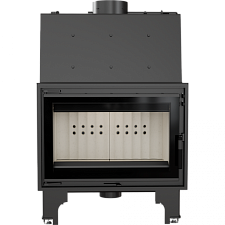 - Модель оснащена подвижным дымоходным отверстием, так что во время монтажа нет необходимости покупать дополнительные колена. Можно легко подобрать угол подключения топки к каминной инсталляции.