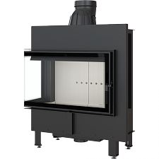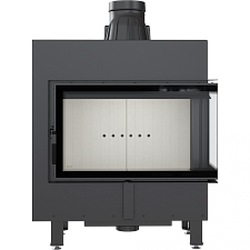 - Модель оснащена подвижным дымоходным отверстием, так что во время монтажа нет необходимости покупать дополнительные колена. Можно легко подобрать угол подключения топки к каминной инсталляции.
