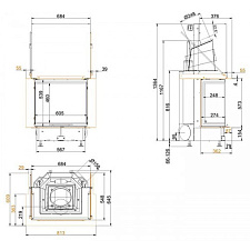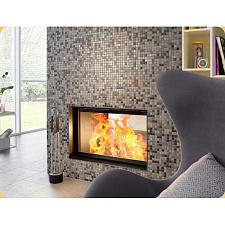 Для защиты корпуса каминной топки в конструкции топочной камеры также установлена двойная задняя стенка с красивым и объёмным рисунком, которая обеспечивает долговечность каминных топок KAWMET.