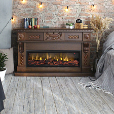 В комплект с линейным порталом Islandia входит широкий электрический камин Beverly 1000. Очаг имеет встроенную функцию регулировки яркости пламени и пульт дистанционного управления. Дополнительный уют придаст приятное потрескивание дров, которое создается благодаря встроенной функции звукового сопровождения.