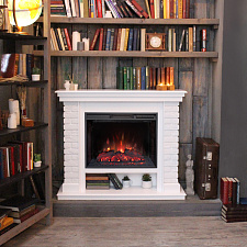 Визуальный эффект горящего огня в очаге создается с помощью специальных технологий, а мерцающие декоративные поленья и звуки тлеющих дров усилят впечатление.