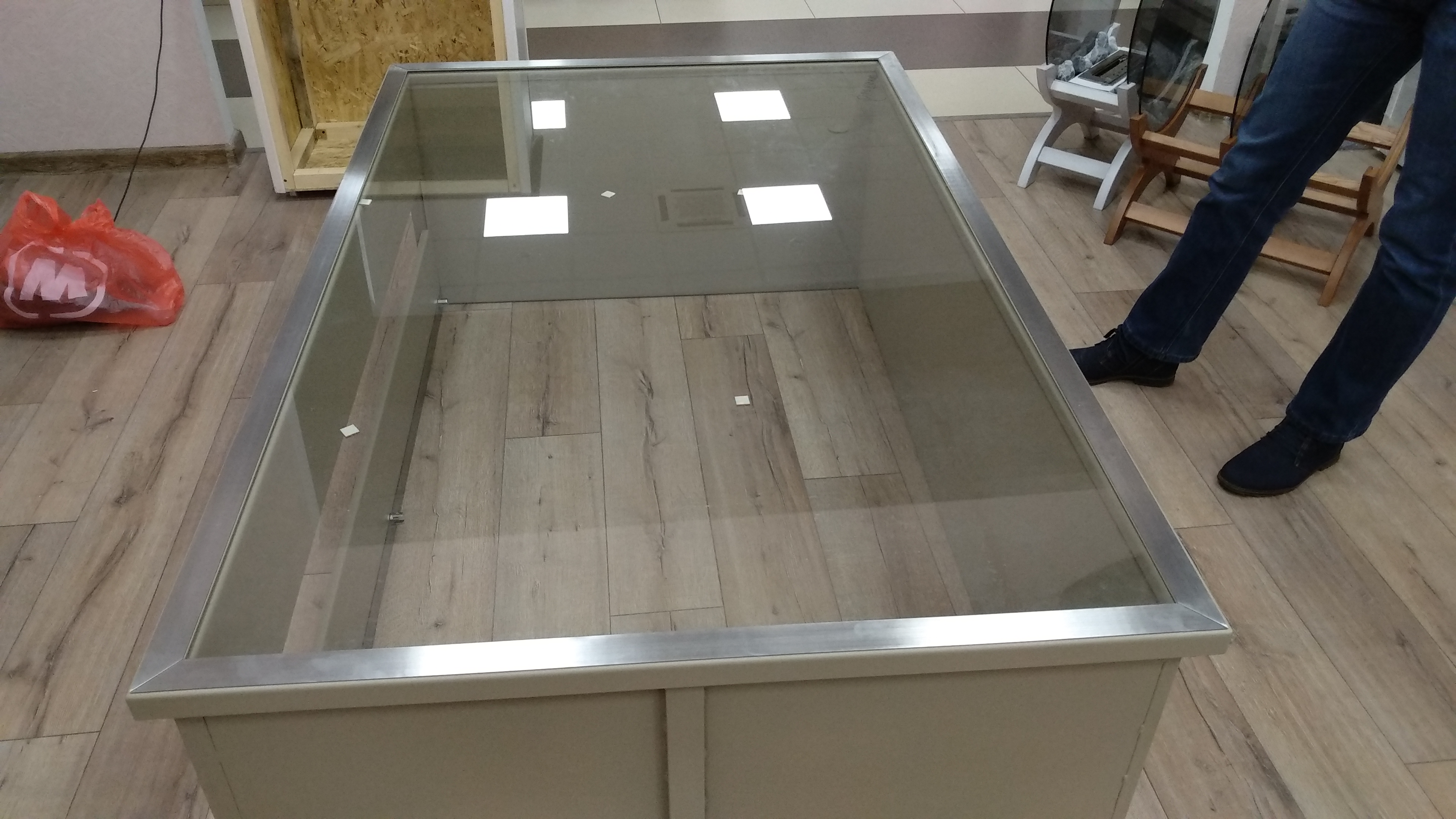 Изготовили сквозной биокамин для гостинной-столовой. Монументальный корпус камина ДхВхГ 1650х1000х500 мм дополняет с одной стороны глухое 8 миллиметровое закаленное стекло с другой стороны защитное стекло высотой 270 мм. Корпус окрашен порошаовой краской цвета бежевый металлик. На внешние рамки с двух сторон приклеены накладки их шлифованной нержавеющей стали. Топливный блок под стать корпусу имеет длину линии огня 1500 мм.