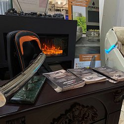 Мы представляли на форуме свои выставочные образцы биокамина, паровой камин и электрокамины.