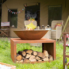 Материалом для костровой чаши из металла часто служит сталь. Сталь – металл гибкий, поэтому подобные конструкции отличаются большим разнообразием форм и дизайнерских решений. Существует большой выбор стальных костровых чаш. Можно даже найти чаши разного цвета. Но костровые чаши из стали имеют и свои недостатки. Особенно это касается изделий из слишком тонкого металла. Срок службы подобных чаш порою разочаровывает. Также сталь имеет свойство ржаветь.